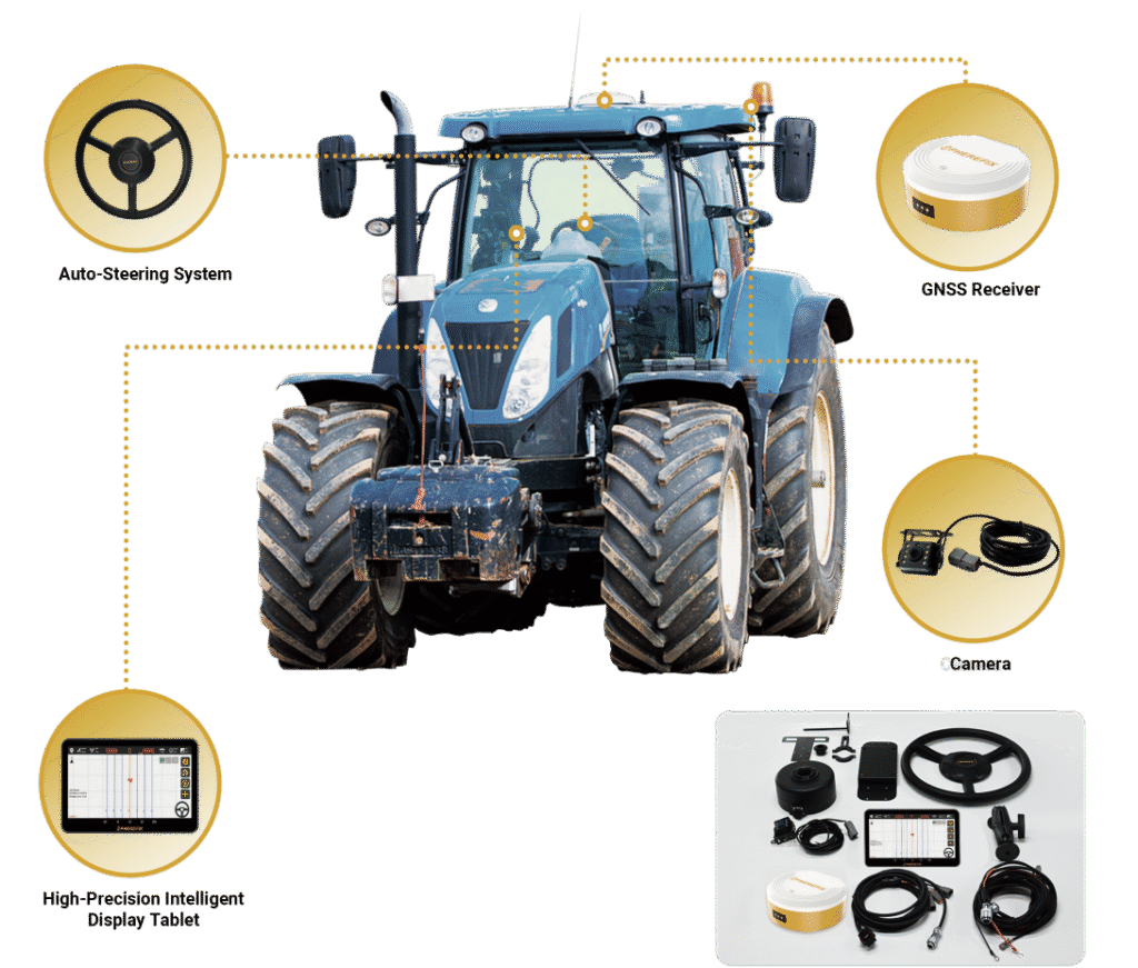 SAG10 is an autonomous steering system for agricultural machinery. It employs high-precision satellite positioning to achieve centimeter-level accuracy in vehicle location and uses advanced DC servo motor technology for steering control. It features an integrated controller that includes with 4G, IMU, UHF radio, and satellite positioning modules, ensuring high-precision autonomous operation and ease of installation and transfer across different vehicles. Suitable for agricultural tasks such as seeding, harvesting, and spraying, SAG10 enhances work efficiency and crop yield with less fuel consumption and labor costs.